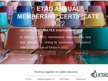 Matex, as an ETAD regular member we have continued to fulfil the requirements and supporting our vision for safer colourants.